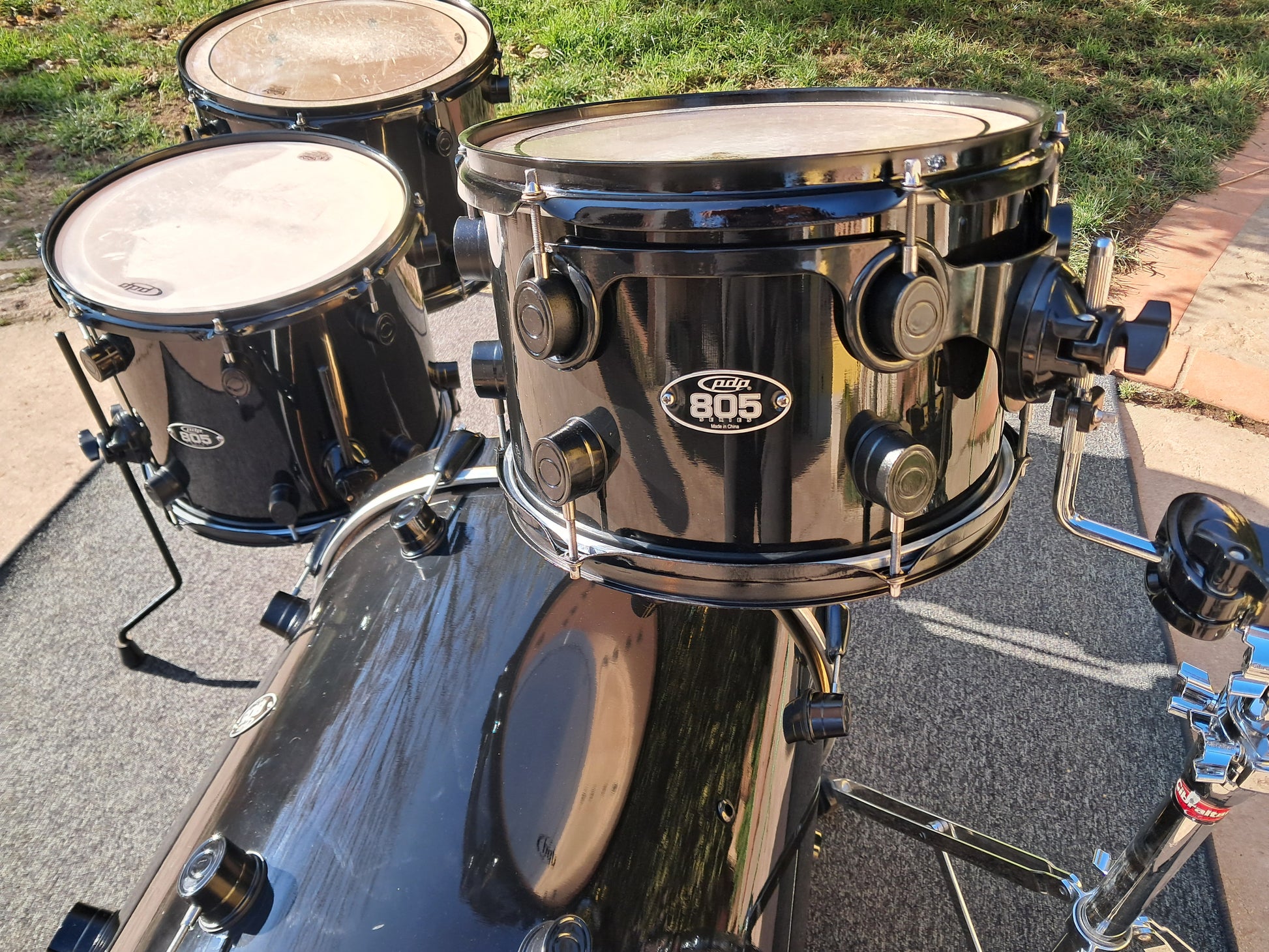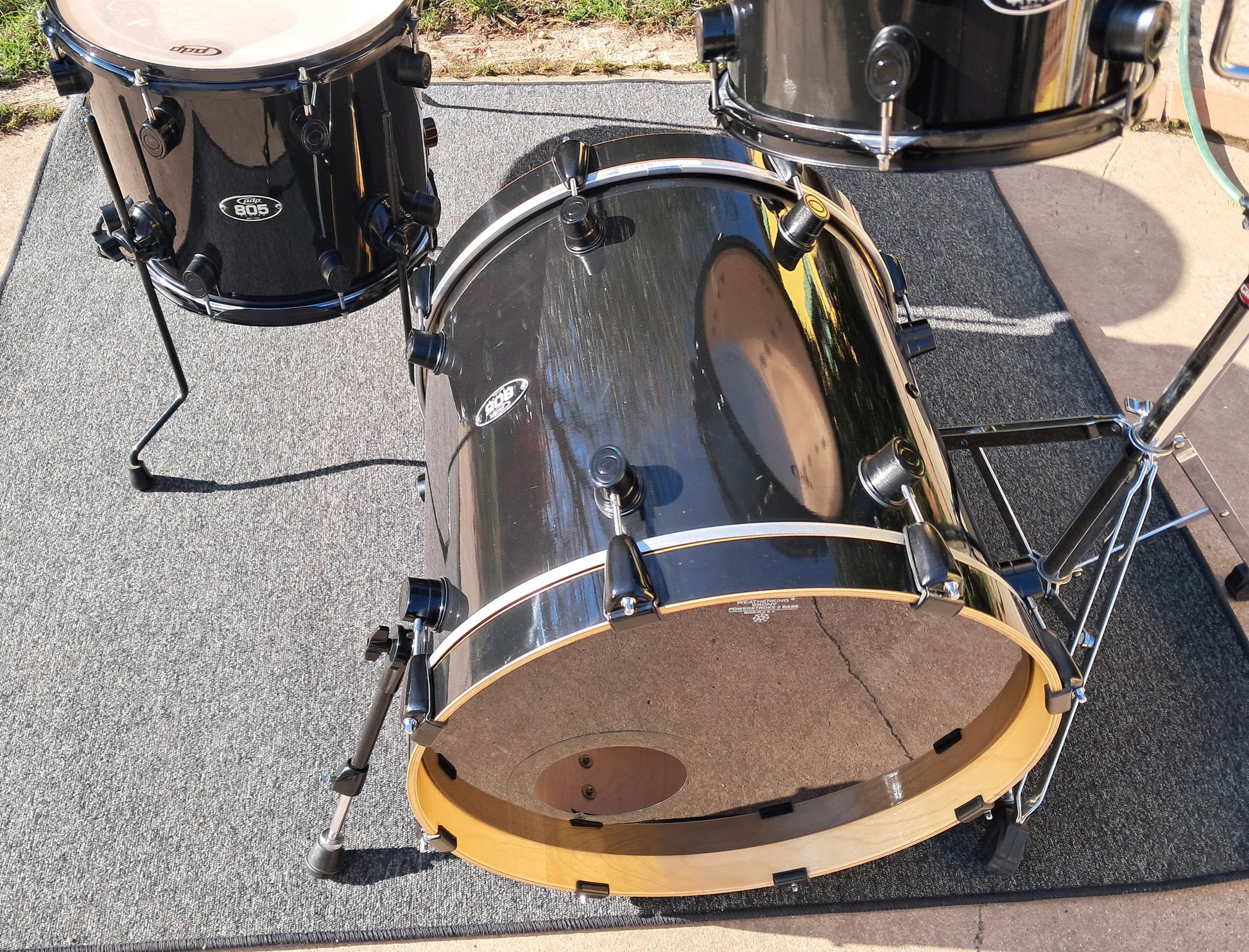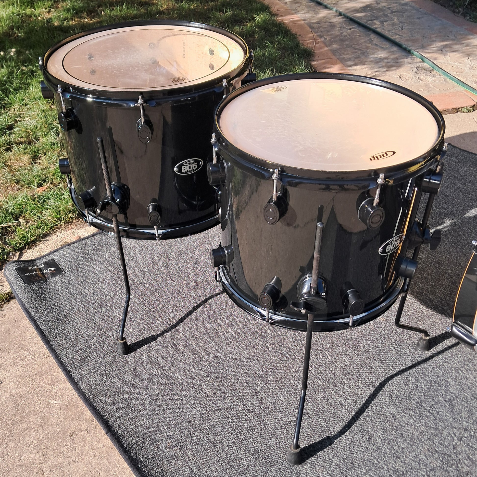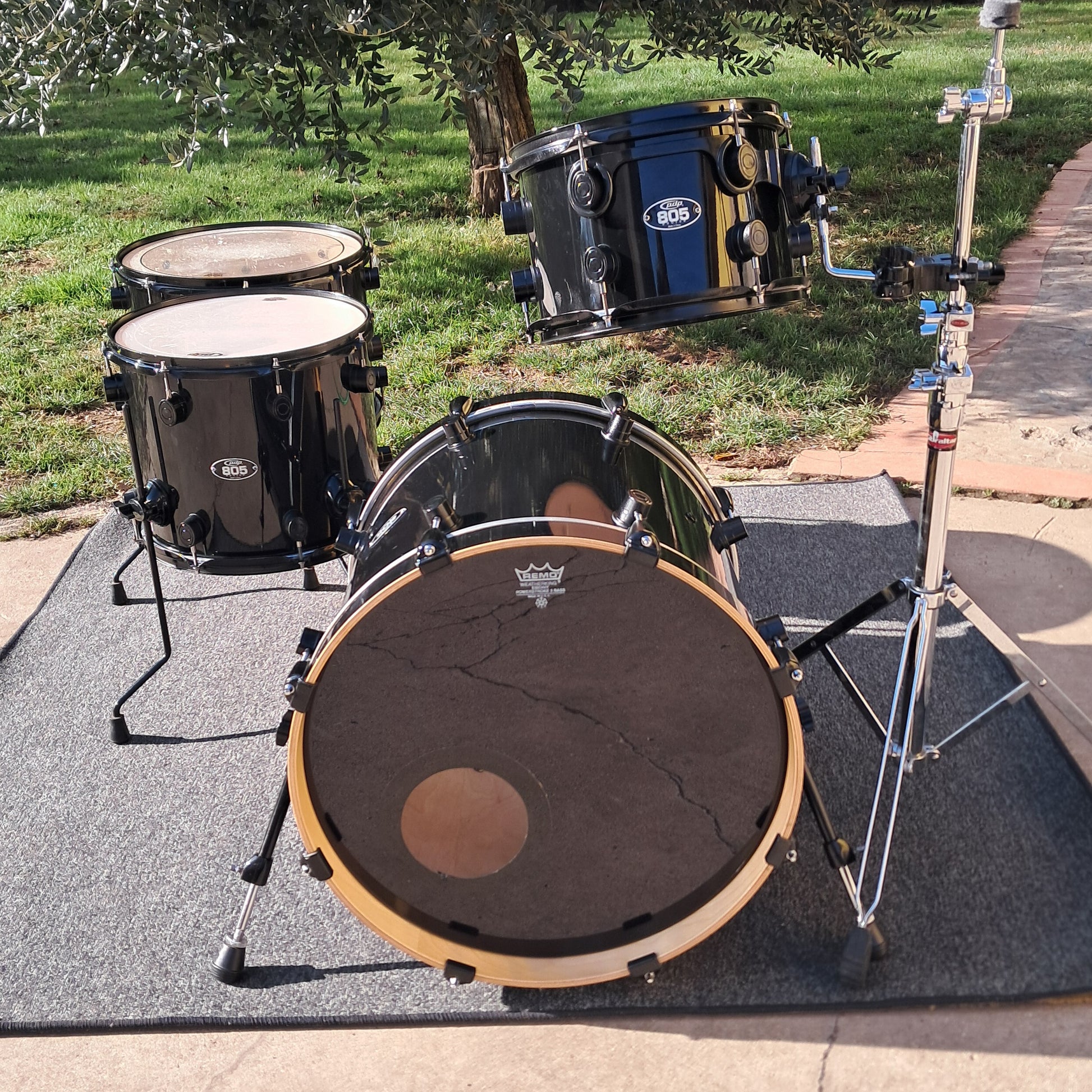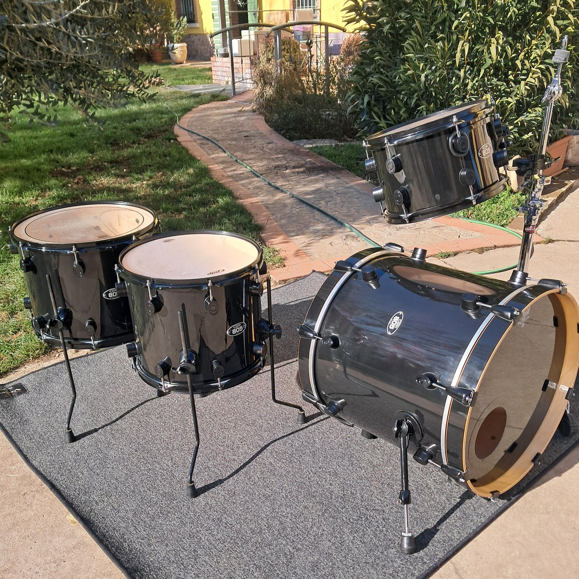 Set composto da cassa 20"x18", tom 12"x8" e timpani a terra 14"x12" e 16"x12".