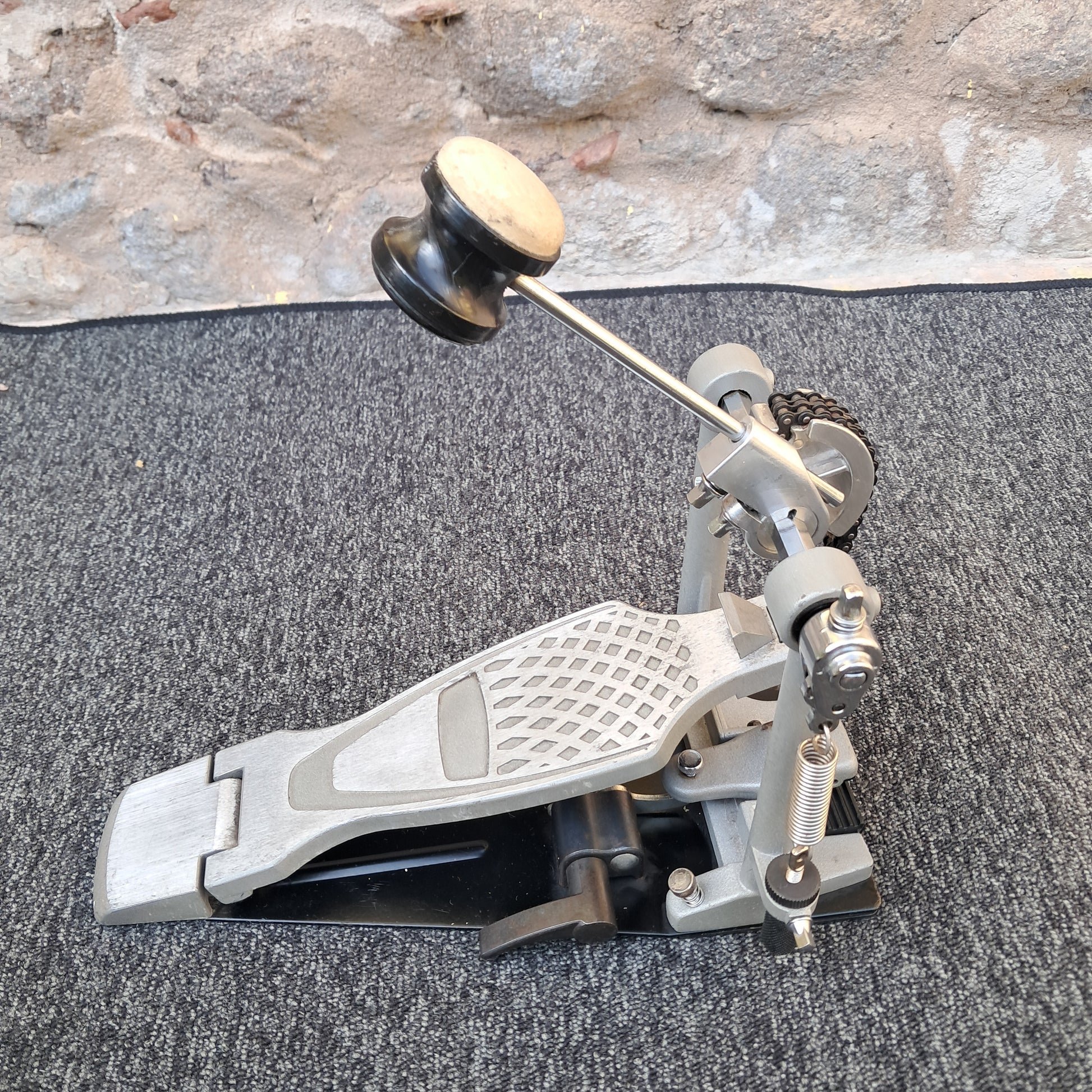 Pedale con trazione a catena doppia, battente a doppia faccia; piastra d'appoggio in acciaio. Condizioni molto buone